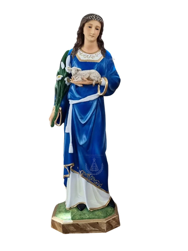 A Imagem Santa Inês Resina 110 cm é uma peça artesanal feita à mão, com um acabamento de alta qualidade. Ela é fabricada em resina, que é um material resistente e durável, o que a torna ideal para uso em ambientes internos e externos. A Imagem em Resina é rica em detalhes, o que a torna única.