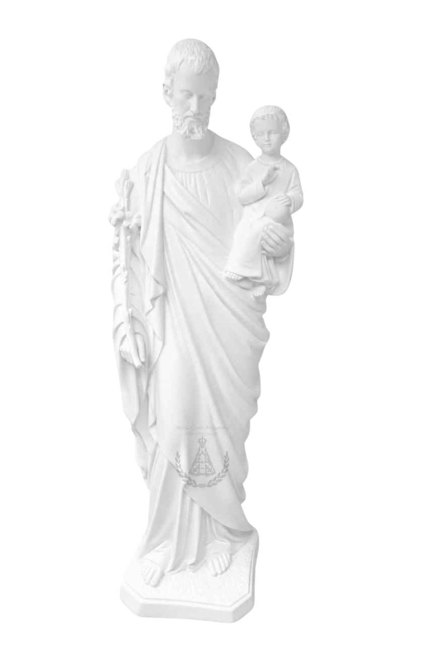 Esta imagem é feita de gesso, podendo ser pintada com diversas técnicas para realçar ainda mais sua beleza. Apresentando uma riqueza impressionante de detalhes, é uma peça deslumbrante que se adequa perfeitamente a capelas, paróquias e, até mesmo, sua casa. Seu tamanho imponente garante que ela se destaque com facilidade em diferentes ambientes.
